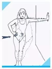 一側(cè)上肢支撐墻面,另側(cè)上肢輔助髖關(guān)節(jié)緩慢下墻面活動(dòng)。